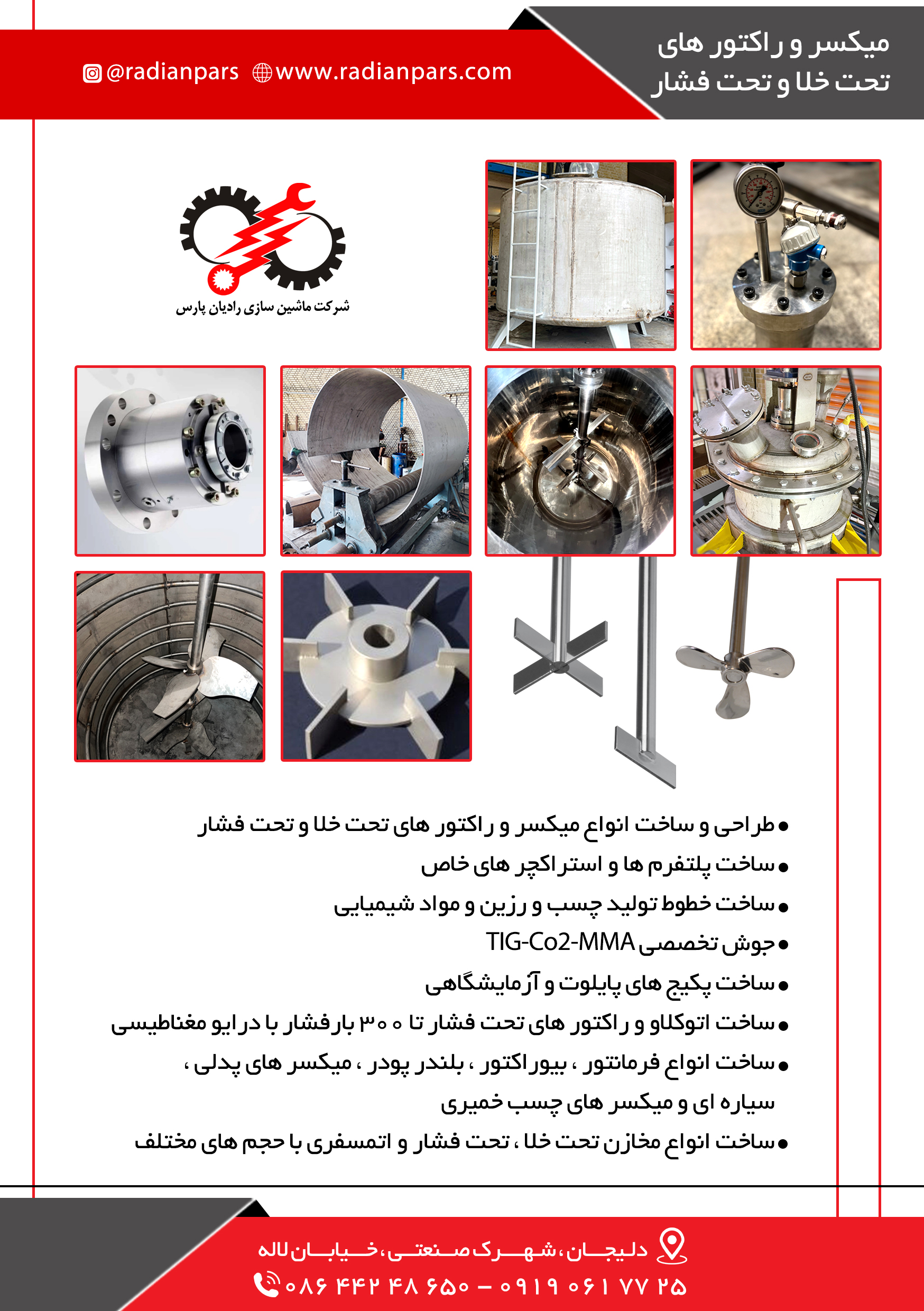 طراح و سازنده انواع اتوکلاو و راکتورهای تحت فشار بالا برای کاربرد های صنعتی ، نفت ، گاز و پتروشیمی ، پروژه های تحقیقاتی و دانشجویی و …
